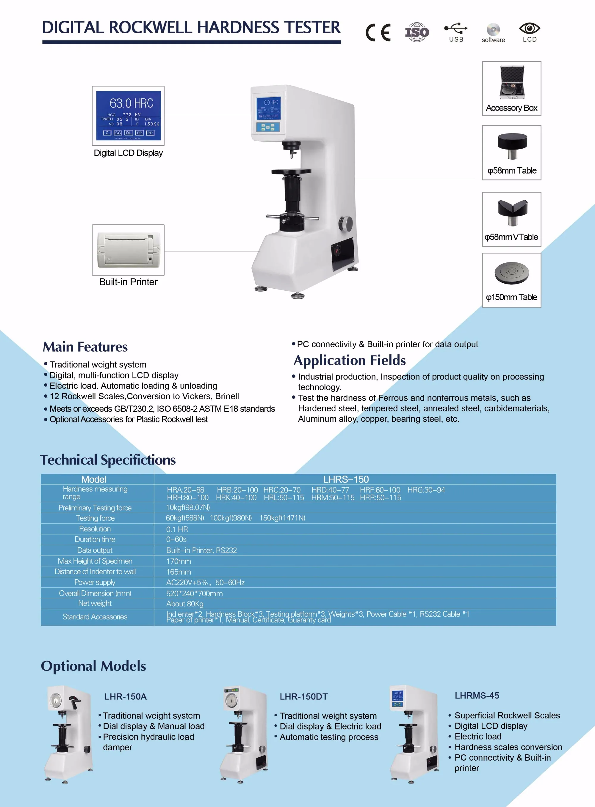 ● Rockwell Scales: HRA, HRB, HRC, HRD, HRE, HRF, HRG, HRK, HRL, HRM, HRR