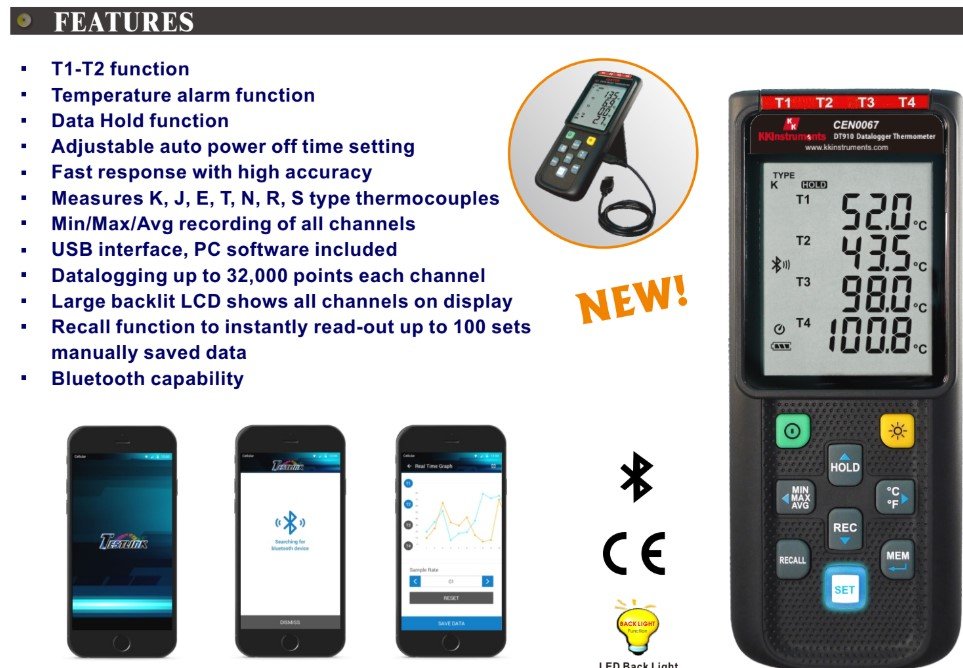 Featured item CEN0067-KKI DT910 WIRELESS BLUETOOTH 4 CHANNEL DATALOGGING THERMOMETER LOGGER (HIGH MEMORY:32000)